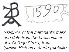 "Perhaps because until very recently it was dwarfed by large industrial buildings, one Tudor house was overlooked completely, and it cries out to be saved. It stands in College Street immediately south of St Peter’s church, and on the bressumer beam below the north gable there is the date AN[N]O 1590, and in the centre there is B over A, a merchant’s mark giving away the initials of the owner.